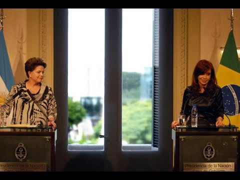Cristina Fernández recibió en Casa de Gobierno a la presidenta de Brasil, Dilma Rousseff, con quien brindó una conferencia de prensa conjunta. En el discurso, ambas mandatarias resaltaron la importancia de mantener las buenas relaciones entre ambos países y resaltaron la imagen de ex presidentes Néstor Kirchner y Lula da Silva, quienes "revirtieron y construyeron una relación diferente entre ambos países". Cristina Fernández recordó a los ex presidentes "Kirchner y Lula" como "dos hombres que revirtieron y construyeron una relación diferente entre ambos países", durante la primera visita oficial de Dilma Rousseff fuera de Brasil. La presidenta Cristina Fernández aseguró que "es un altísimo honor" recibir a la presidenta de Brasil. "De esto que hoy algunos denominan "mundo en crisis", yo no me canso de calificarlo como "un mundo de cambios", que deben ser interpretados, decodificados y aprovechados por quienes tenemos responsabilidades institucionales, sobre todo para quienes, como la presidenta Rousseff y yo, creemos profundamente en el crecimiento y en las soberanías nacionales", manifestó Cristina Fernández. "Por eso, digo que si hasta ahora Brasil y Argentina estaban unidos, creo que a partir de ahora estarán aún más. Esto es lo que ambas Presidentas queremos y que se ha traducido en múltiples reuniones que han hecho nuestros colaboradores y que se han traducido en múltiples acuerdos, pero fundamentalmente, acuerdos que van a ser seguidos y profundizados por acciones concretas", concluyó Cristina Fernández. Cristina Fernández y Dilma Rousseff con las Madres La titular de Madres de Plaza de Mayo, Hebe de Bonafini, calificó como "hermosisima" la reunión que mantuvieron con la presidenta Cristina Fernández y su par Dilma Rousseff, junto con otras organizaciones de derechos humanos, en la Casa de Gobierno. Hebe Bonafini dijo que le entregaron a Rousseff los detalles del proyecto de fabricación de casas prefabricadas y de aulas móviles que comenzará a confeccionar esa entidad. Para Bonafini ambas jefas de Estado "son dos mujeres revolucionarias que lucharon junto con nuestros hijos y llegaron a Presidentes" Sobre esta reunión, Cristina Fernández agradeció "el maravilloso gesto de la presidenta Dilma Rousseff de haber solicitado mantener una entrevista con Madres y Abuelas de Plaza de Mayo, un gesto que la distingue como mujer, como política, como madre y, fundamentalmente, como sujeto histórico también de lo que ha sido la historia de nuestros países y de nuestro continente, la América del Sur".