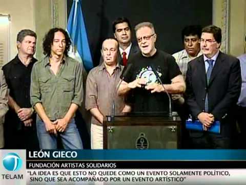 La presidenta Cristina Fernández recibió esta tarde a los integrantes de la Fundación Artistas Solidarios, que le presentó el proyecto para la construcción de escuelas destinadas a la comunidad Qom (tobas). El centro educativo se levantará con fondos aportados por el estado nacional y provincial. La iniciativa surge de un grupo de artistas encabezados por León Gieco, Gustavo Santaolalla y Javier Calamaro, entre otros.
