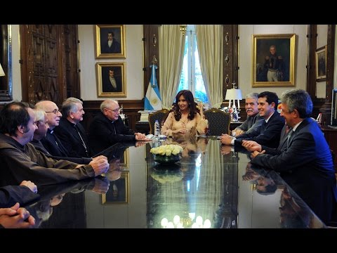 La Presidenta de la Nación, Cristina Fernández de Kirchner, recibió esta tarde en Casa de Gobierno al Nuncio Apostólico en la República Argentina, Monseñor Emil Paul Tscherrig. Durante la reunión se realizó el lanzamiento del llamado a licitación para la revitalización y puesta en valor de la Iglesia San Francisco de Asís y de la capilla San Roque de la Ciudad Autónoma de Buenos Aires y de las basílicas de Luján y de Mercedes.