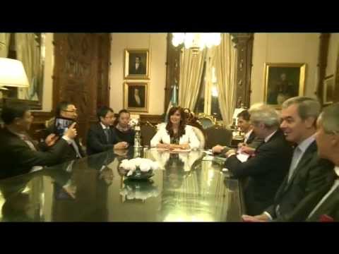 La Presidenta, Cristina Fernández de Kirchner recibió en el Despacho Presidencial de Casa de Gobierno, al CEO de Chengdu China Occidental Hope, al presidente de Sichuan Te Qu Investment Gruop, y al presidente de Sichuan Dekang Agro-Cría de Sci Tech, DeGen Wang.