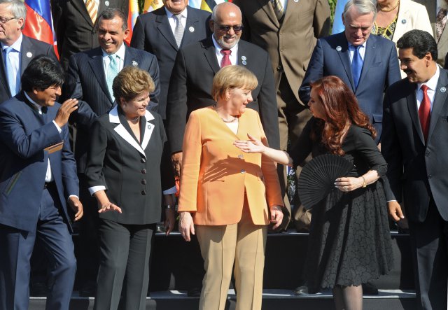 La presidenta Cristina Fernández se reunió este mediodía con la canciller Angela Merkel, en el marco de la cumbre de presidentes la Comunidad de Estados Latinoamericanos y Caribeños (CELAC) y la Unión Europea (UE). Las reuniones bilaterales de la jefa de Estado forman parte de la agenda prevista para el segundo día de la Cumbre.